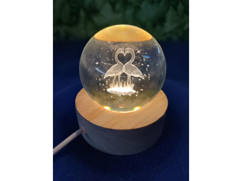 Noční světlo křišťálová koule 3D Dva plameňáci