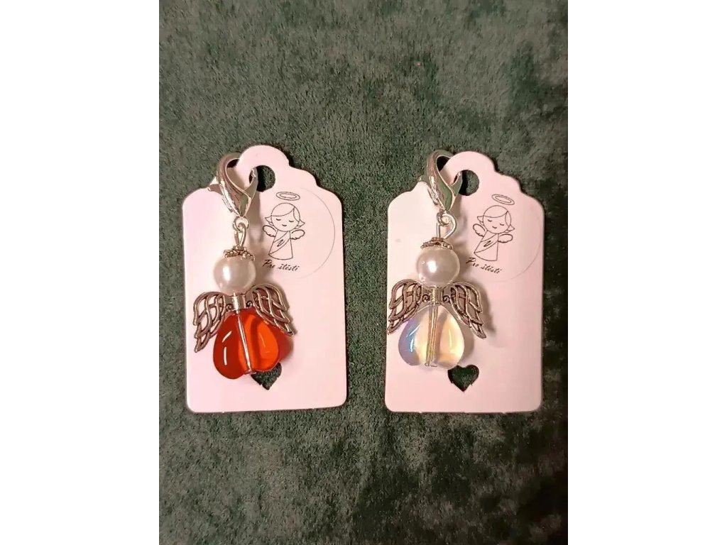 Přívěsek Andělka srdíčková s rudým nebo opálovým srdcem. Drobný dárek na peněženku, kabelku, pro kamarádku, spolužačku nebo z lásky.