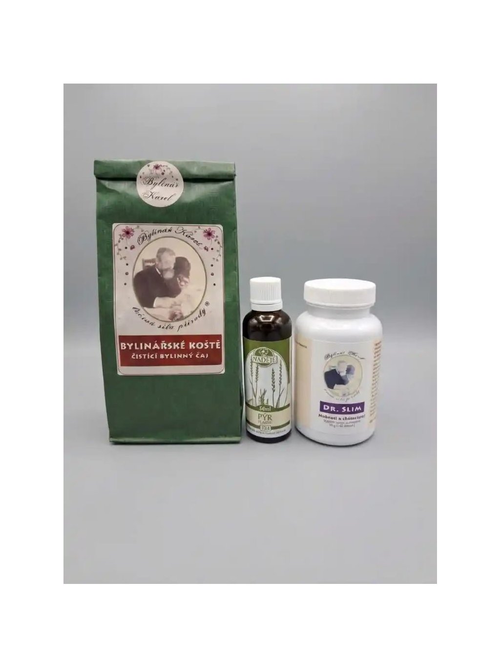 Balíček na hubnutí a cholesterol – přírodní kombinace bylinného čaje, tinktury pýru a tobolek Dr. Slim s glukomannanem. Podporuje kontrolu hmotnosti, normální hladinu cholesterolu a celkovou harmonii těla.