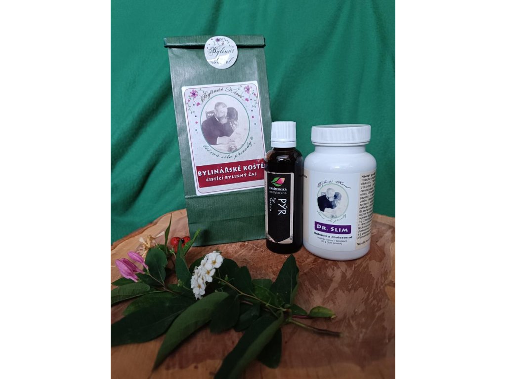 ✅ Bylinný čaj – připravte 3× denně, popíjejte po doušcích ✅ Dr. Slim tobolky – užívejte 3× denně dle doporučení ✅ Pýr tinktura – 25–30 kapek 3× denně, 15 minut před jídlem