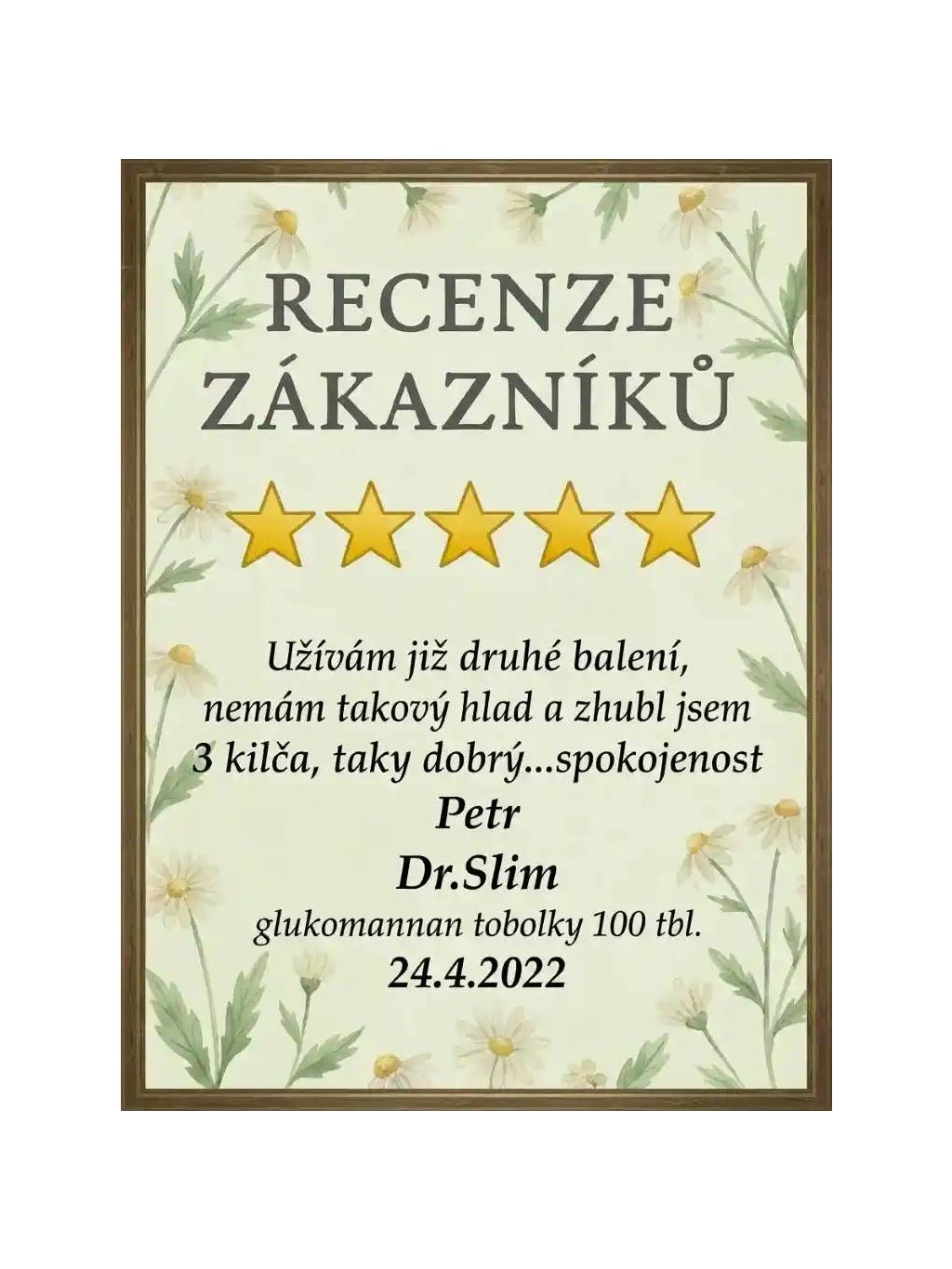- Dr. Slim – 100 tobolek s glukomannanem podporujícím snížení hmotnosti a udržení normální hladiny cholesterolu