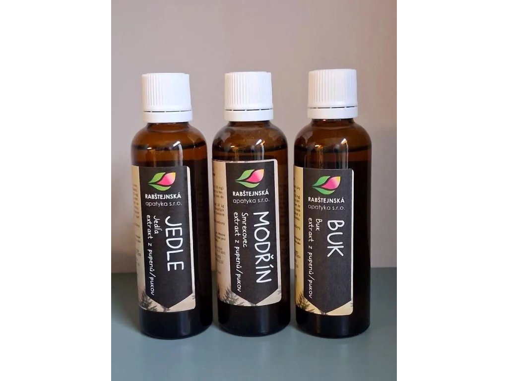 Složení: výtažek z pupenů, 48% alkohol, rostlinný glycerol. Obsah: 3x 50 ml