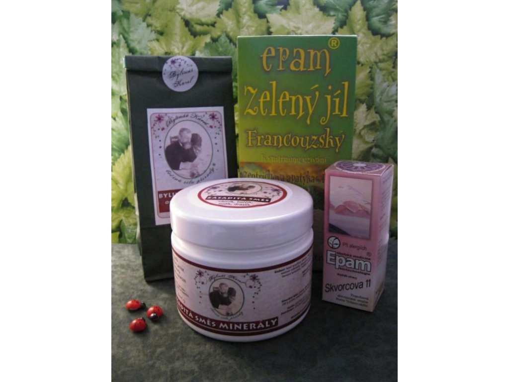 Kúra obsahuje doplňky stravy: Zásaditou směs MINERALY, Bylinářské koště (čaj), Francouzský zelený jíl a EPAM 11 (tinktura).