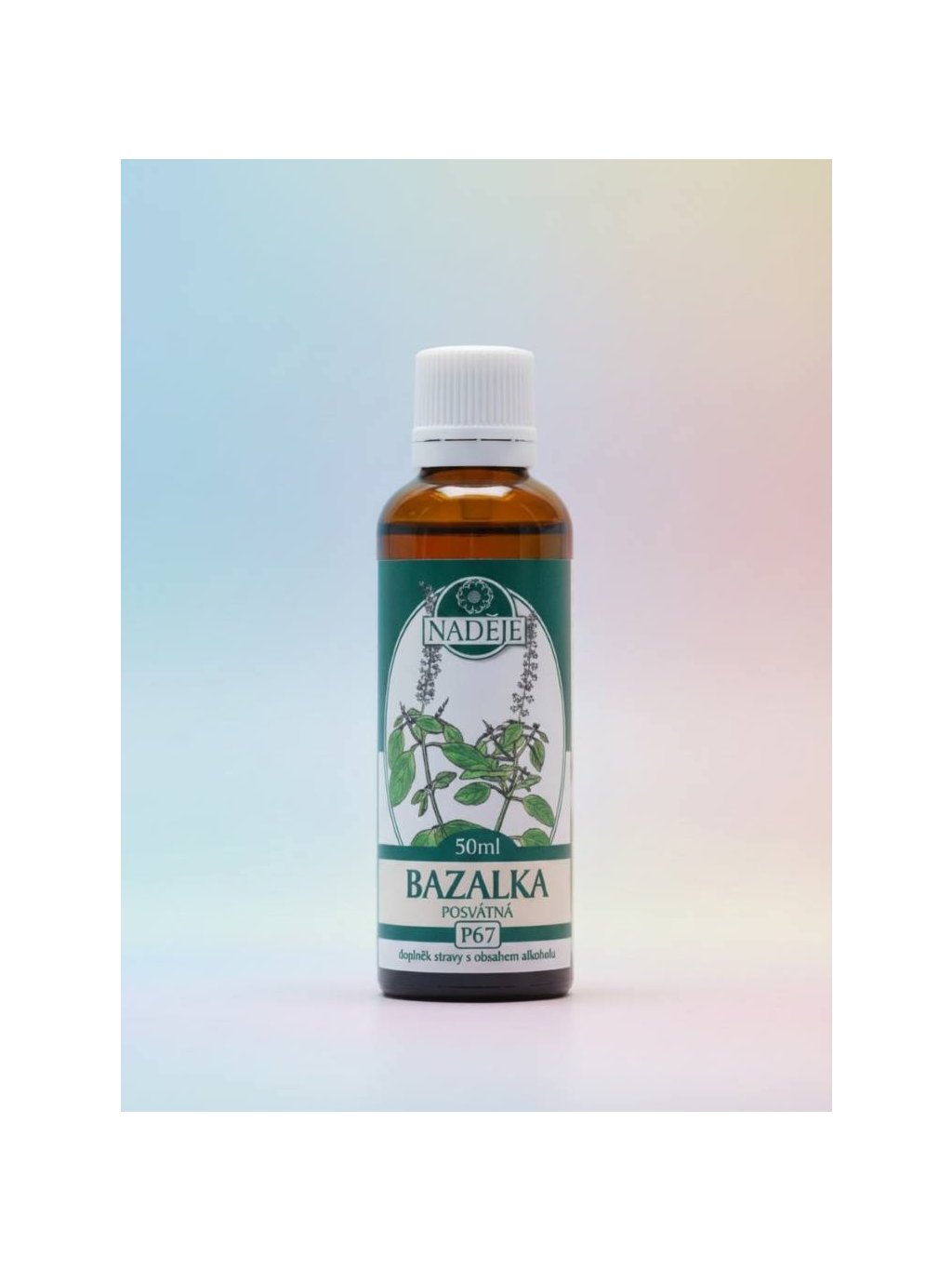 Tinktura z pupenů bazalky posvátné tradičně užívaná pro zklidnění, relaxaci, spánek, duševní a kognitivní činnost, krevní tlak, dýchací systém, srdce a vitalitu.