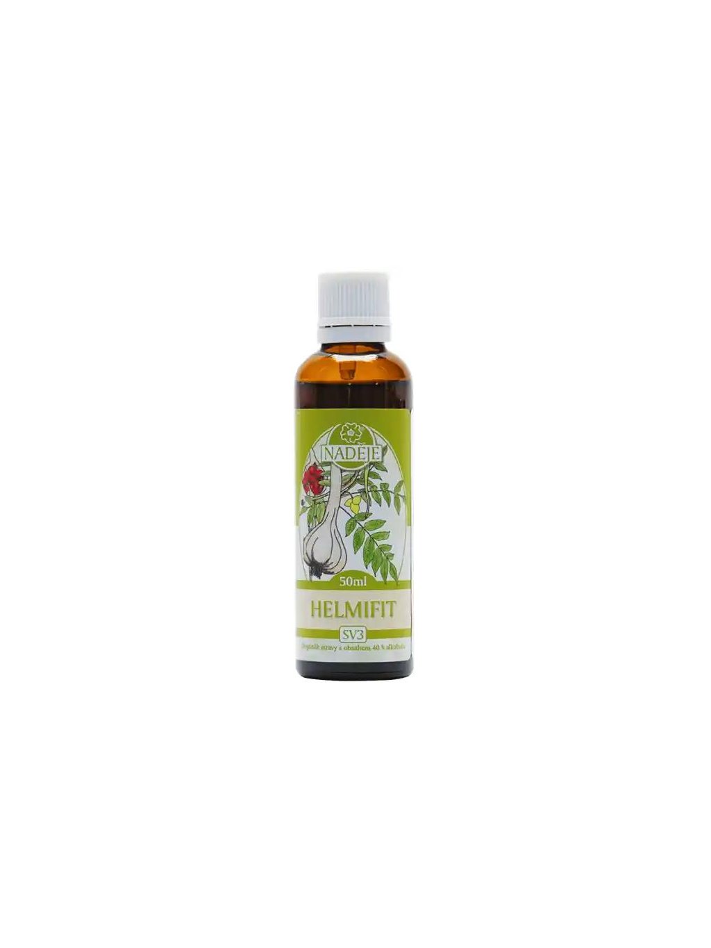 Helmifit je bylinná tinktura obsahující česnek medvědí a setý, pelyněk, hořec žlutý a pupen ořešáku amerického. Byliny mají široké spektrum účinků — podporují imunitu, trávení, oběhovou soustavu, metabolismus cukrů a cholesterolu, relaxaci i celkovou vitalitu a přirozené vylučování těžkých kovů.
