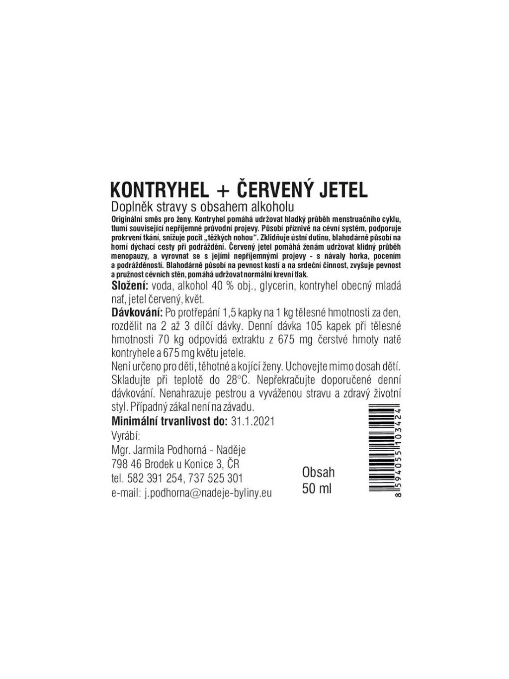 Kontryhel + červený jetel je bylinná tinktura zaměřená na ženský komfort. Podporuje menstruační a menopauzální pohodu, normální stav kostí, činnost srdce, kardiovaskulární systém, klouby, svaly i trávení.