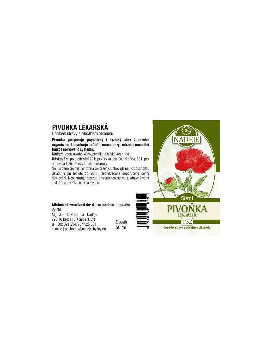 bylinná tinktura z kořene a květu pivoňky 50 ml