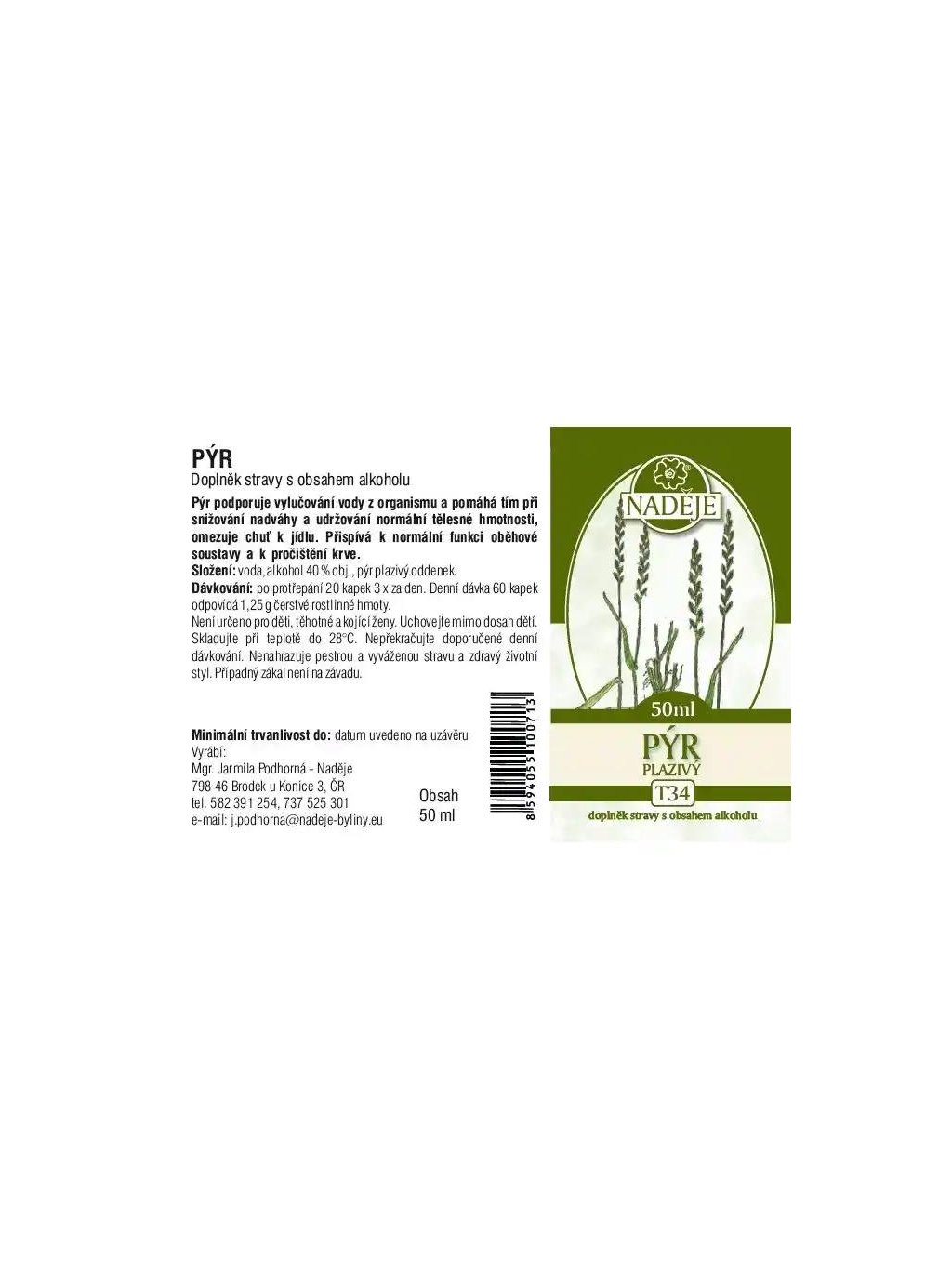 | Výrobní společnost : | Naděje – Mgr. Jarmila Podhorná |