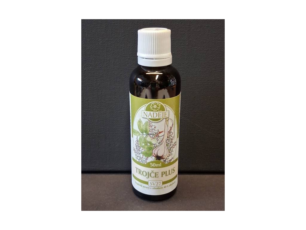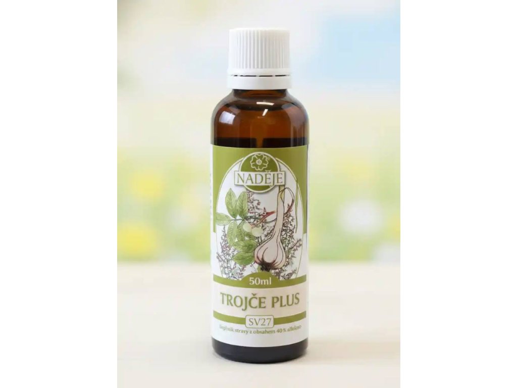 Trojče Plus je bylinná tinktura z pelyňku, hřebíčku, ořešáku a dvou druhů česneku, která podporuje trávení, oběhový systém, dýchací soustavu a celkovou vitalitu. Silná kombinace pro přirozenou očistu organismu.